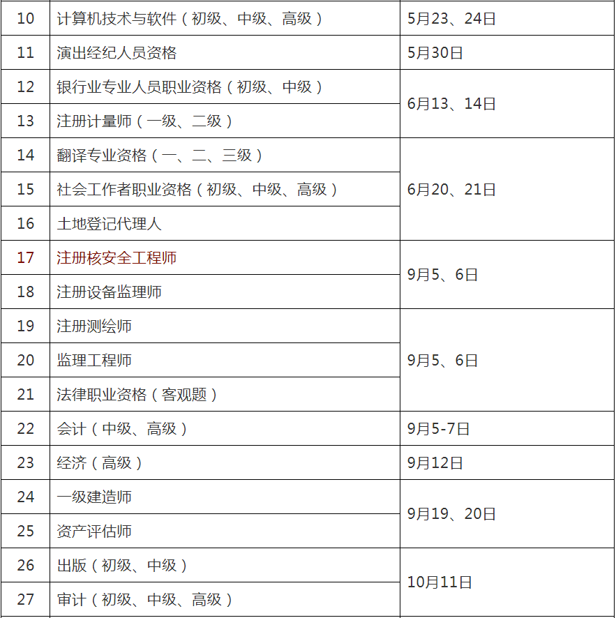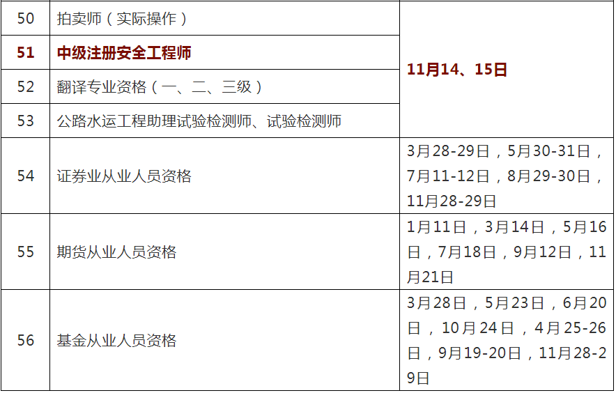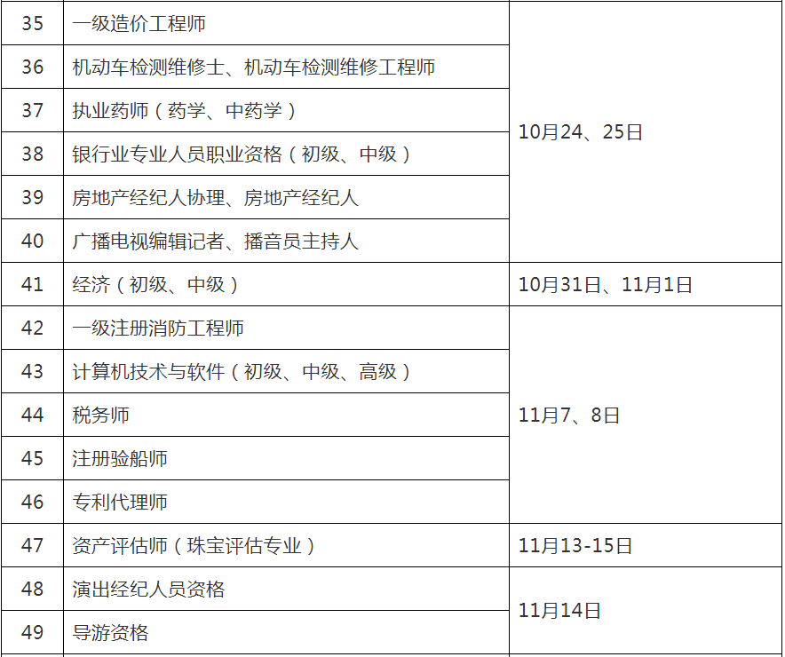 三、教师资格下半年考试,执业兽医资格,文物保护工程从业资格,认证人员职业资格,特种设备检验、检测人员资格等具体考试日期由相关部门另行通知。证券期货业从业人员资格(含基金从业人员资格)各次考试地点不同,具体安排以相关行业协会考试公告为准。专业技术人员计算机应用能力考试日期由各地自行确定。