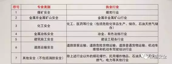 (4)各专业类别注册安全工程师执业行业界定表
