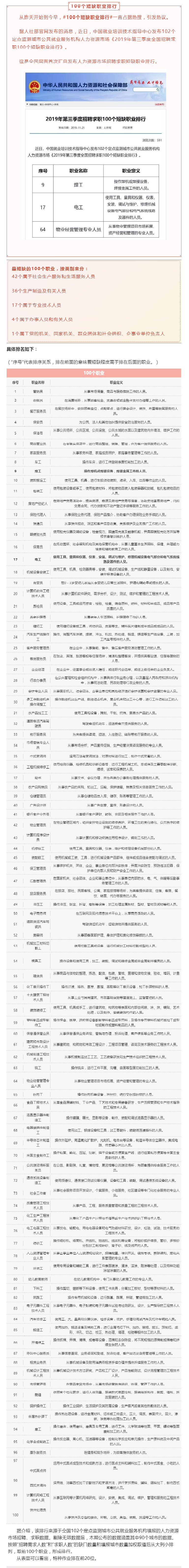 我国官方首次发布100个短缺职业名单,电工、焊工排名赫然在列
